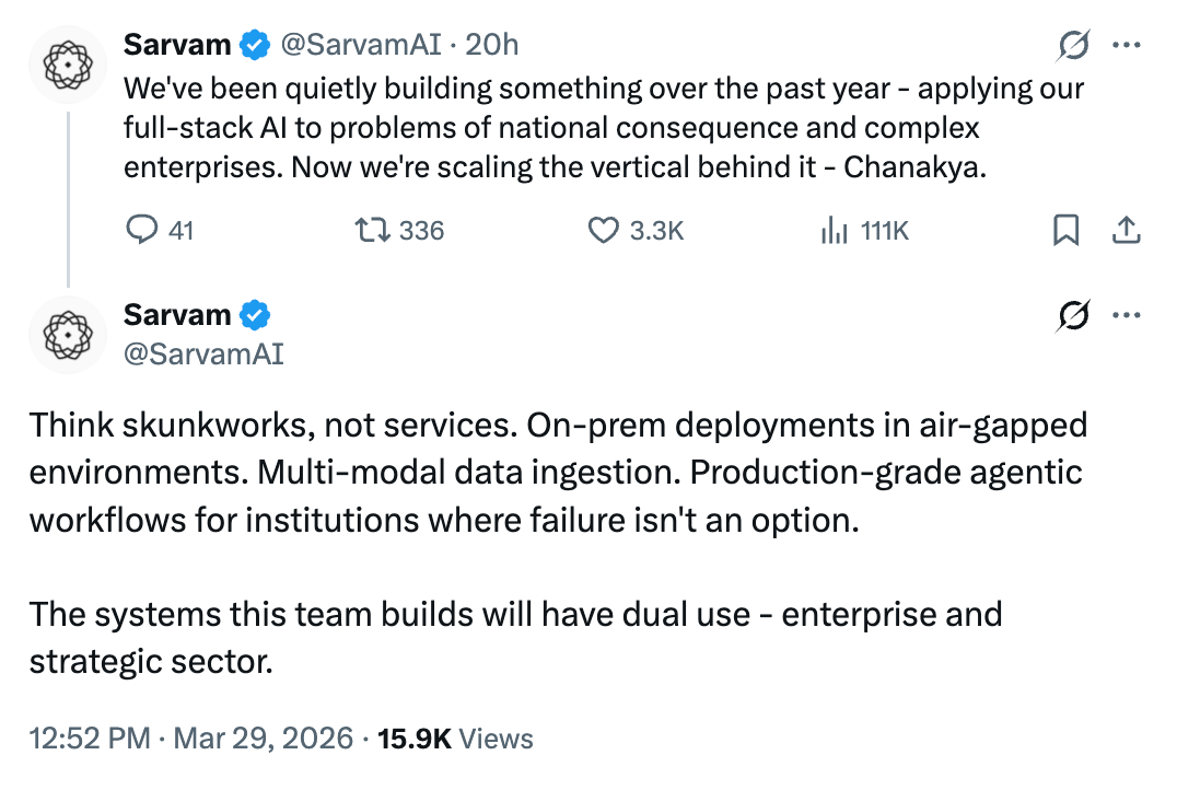 Chanakya is Sarvam’s upcoming service that’s built with on-premise deployments and air-gapped environments in mind to provide security for customers that need additional safeguards when it comes to using AI.